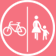 , signifie que piétons et cyclistes se partagent le chemin. Roulez prudemment et faites attention aux piétons.