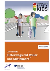 Leyla mit dem Skateboard und Adeel mit dem Roller Leyla und Adeel treffen sich im verkehrsberuhigten Bereich ihrer Straße. Dort üben sie mit ihren neuen Fahrzeugen. Es ist gar nicht so einfach, sich ungeübt mit dem Skateboard und dem Roller zu bewegen. Daher empfiehlt es sich vorher zu üben, um sich später sicher auf den dafür vorgeschriebenen Wegen zu fühlen.